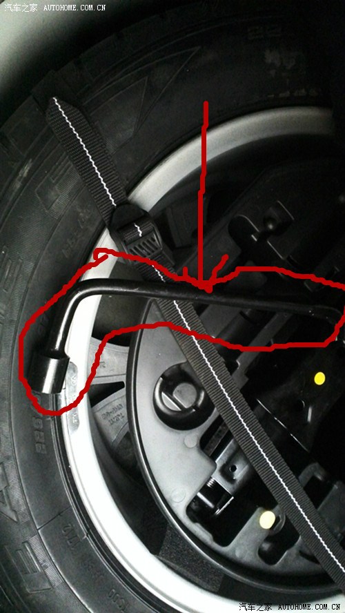 看见了吗?,就是备胎上的扳手。 然后用它做什么呢???