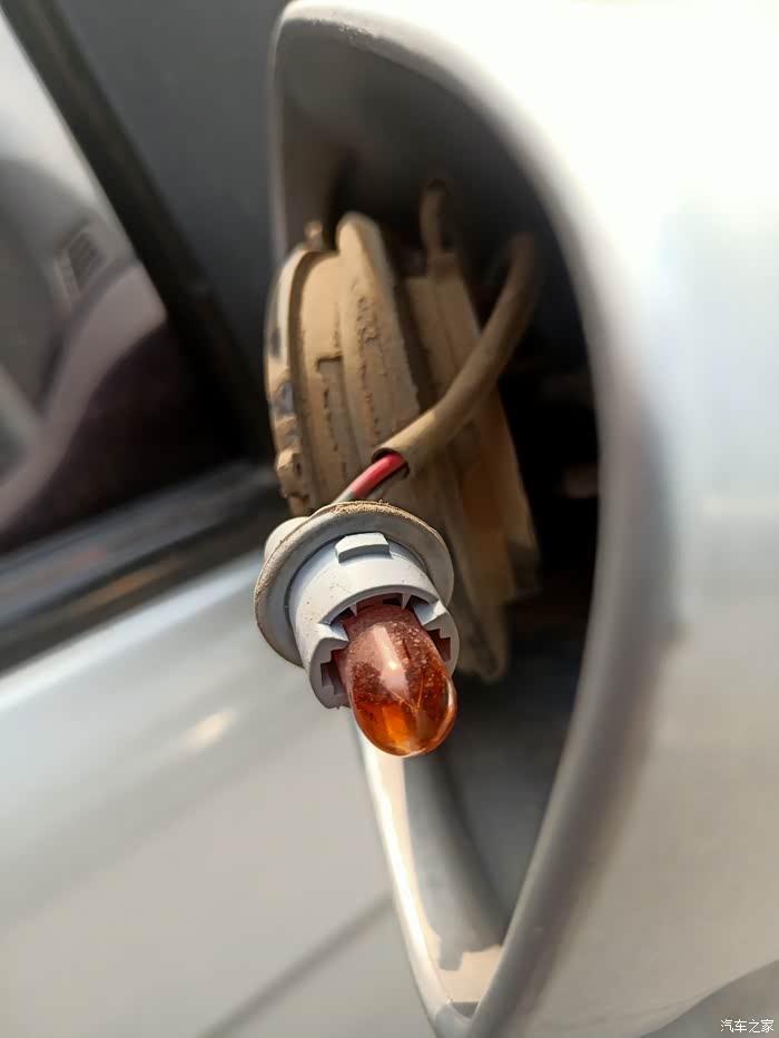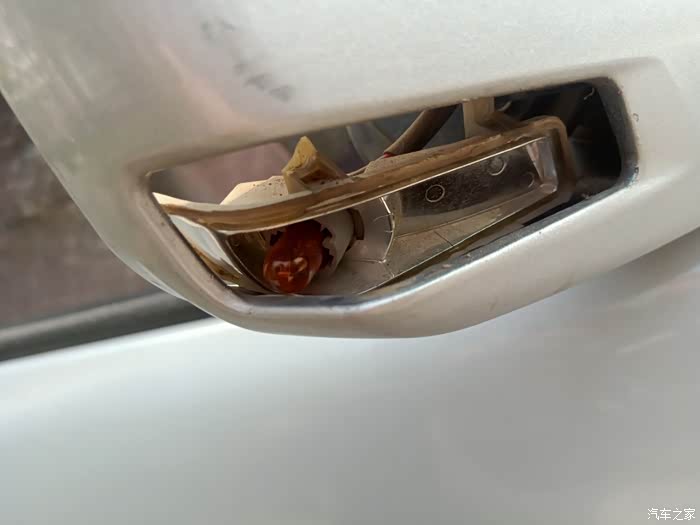 左后视镜 转向灯罩早已发黄,和新的形成了鲜明对比