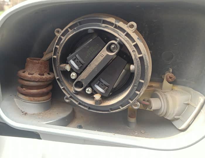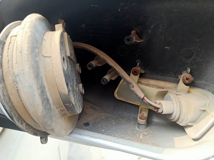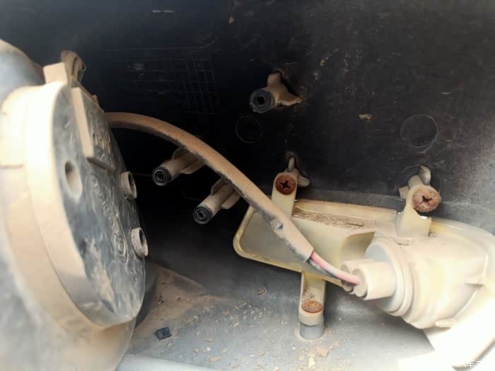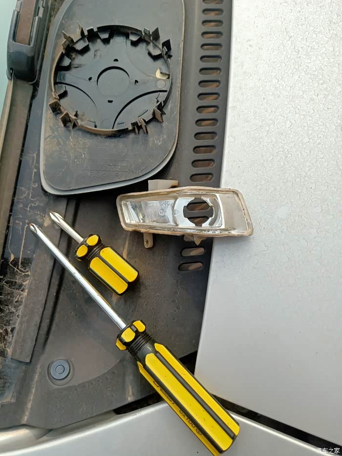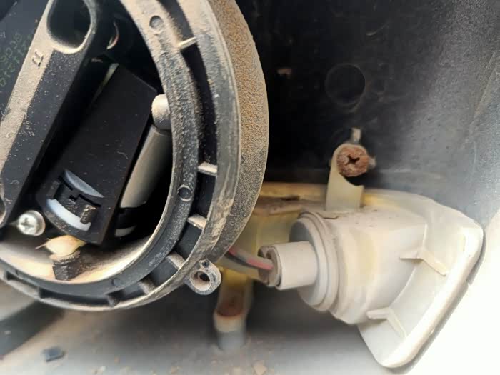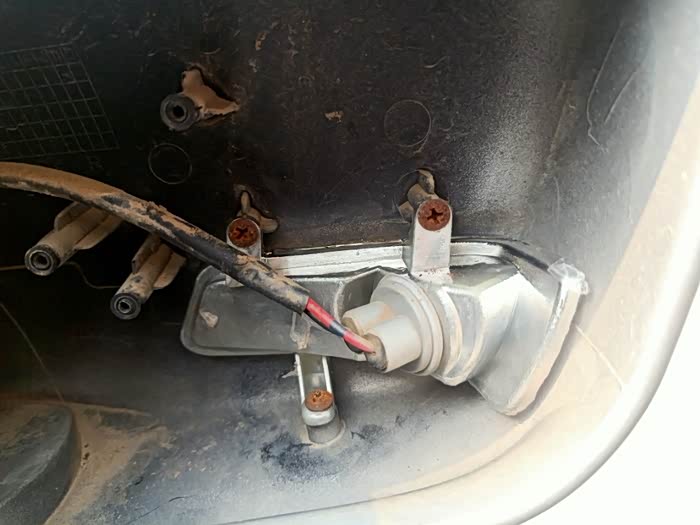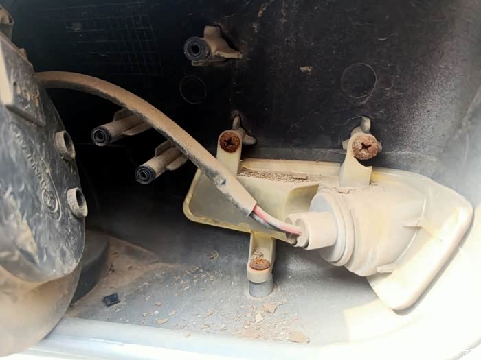 固定转向小灯罩的三颗小螺丝整个被锈覆盖严实了
