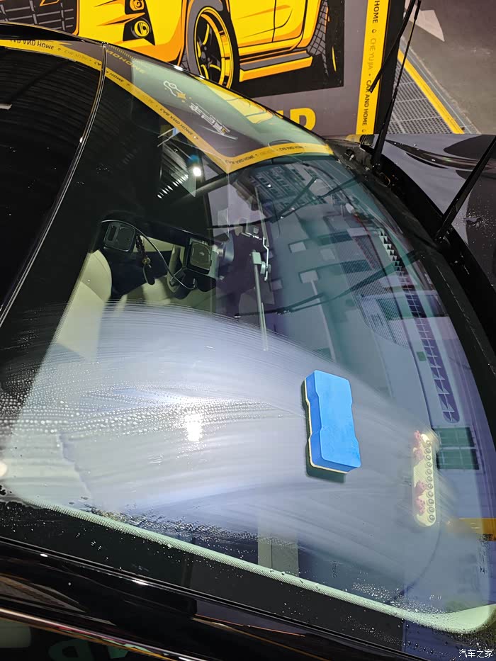 ·玻璃镀膜剂按井字型涂抹,静置3分钟后抛光