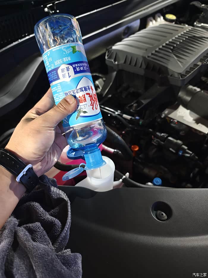 关于玻璃水,我是使用自来水+洗洁精使用,日常开车勤喷水刮一下,可以减少油膜的附着,觉得有点脏了,就喷水就刮,不要等到很脏了看不下去了才来刮。