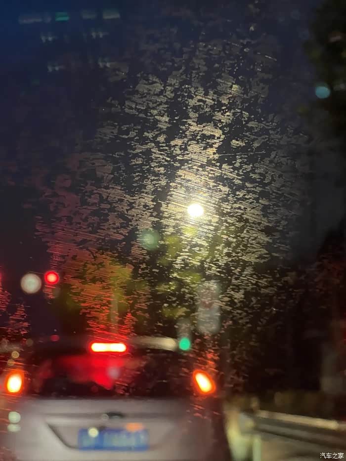 ·雨天雨刮刮过玻璃后仍模糊,出现彩虹纹或水渍