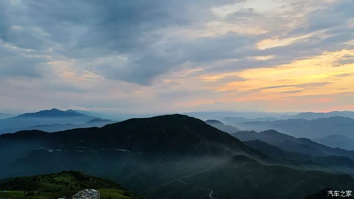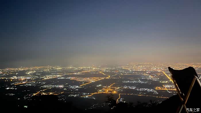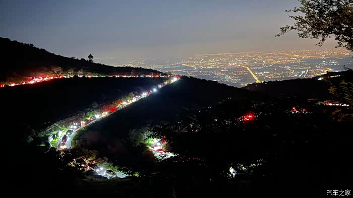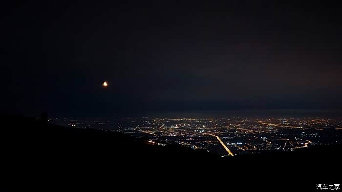 入夜的景,又是另一番了。星空点缀了苍穹,弯月从城市中升起。山间的车儿拉起了一条下山的长龙。
