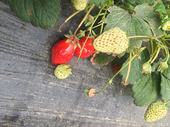 草莓跟野草长在一起,感觉像是野的一样。一看就没打农药,没打除草剂。绿色,天然。而且门口还有水。就是让吃啊。太实在了。