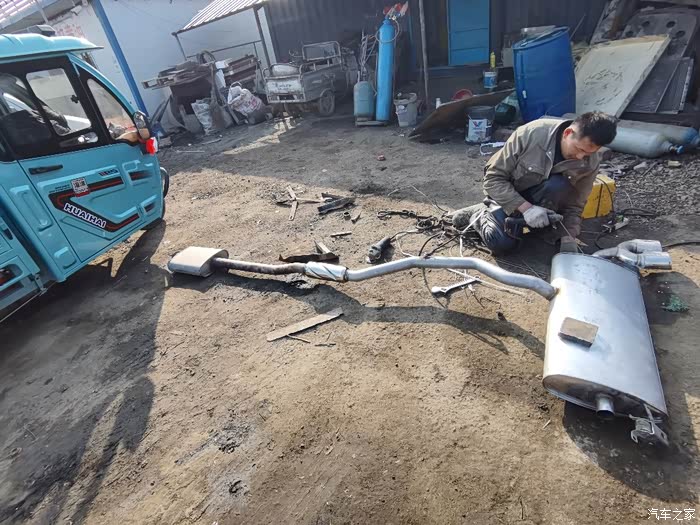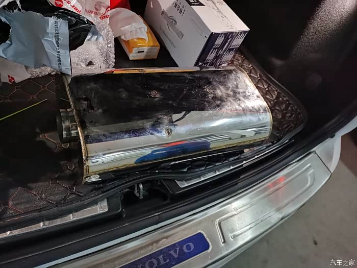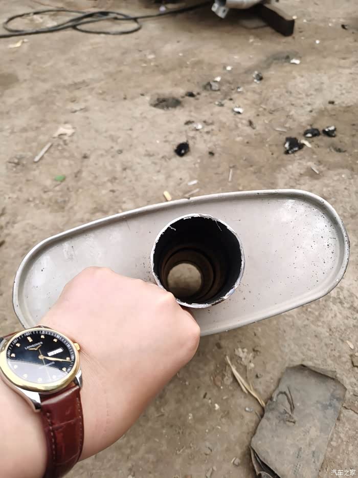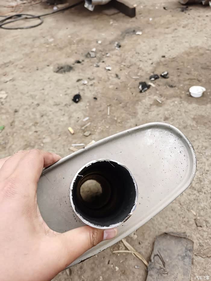 原厂消音器就是一直筒,没啥效果,直接割掉。我把它作为礼物送给了4S,😄