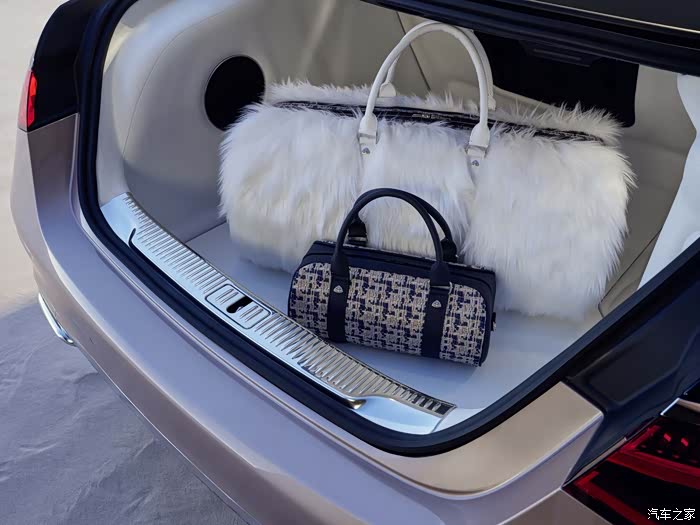 Haute Voiture S 680 的外观采用航海蓝和玫瑰金双色调涂装,带来定制、高级时尚设计感。车轮采用匹配的航海蓝色,而动画梅赛德斯-奔驰或梅赛德斯-迈巴赫图案则迎接进入前门或后门的乘客。采用最奢华和精致的面料制成,一种由环状纤维制成的纱线,混合有品位的蓝色、米色和金色编织面板以及复杂的玫瑰金饰边细节,豪华感拉满。