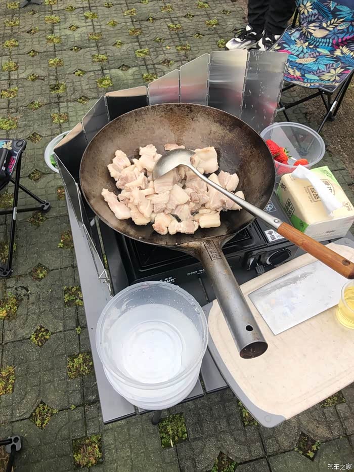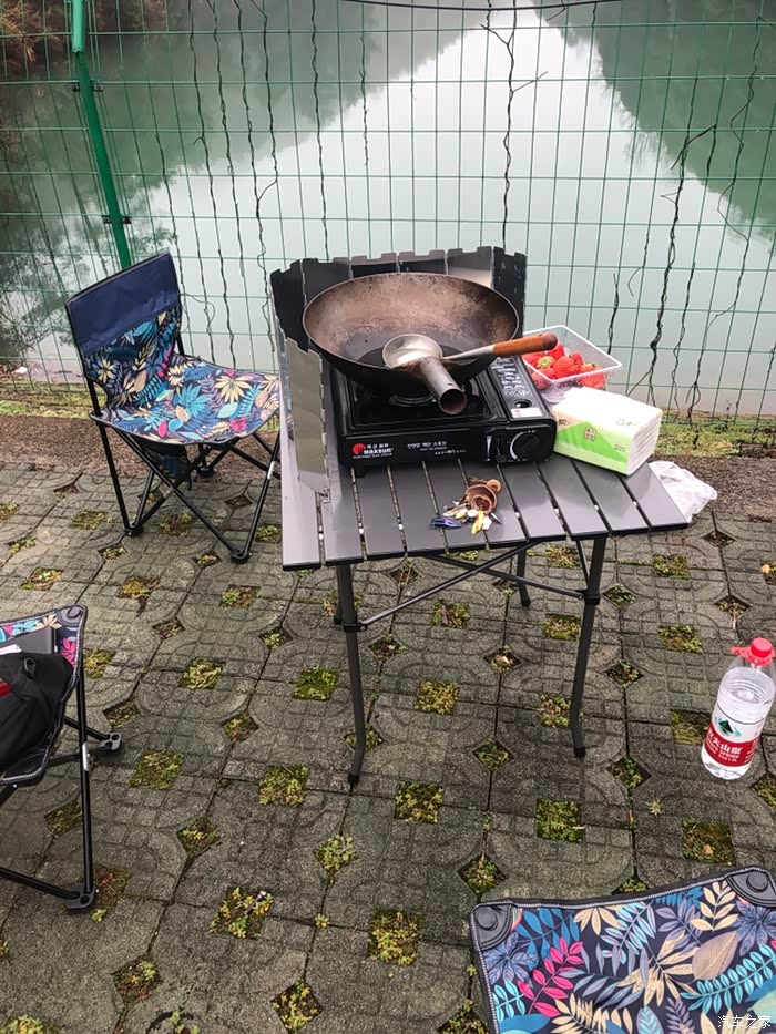 之前买车的时候就知道这个车有对外供电功能但是一直没去使用过最近看天气暖和了,所以前几天买了一个外放插线板,今天天气好约了两个朋友去钓鱼顺便去野餐,烧了一个饭掉了6公里续航,很省啊,体验很好