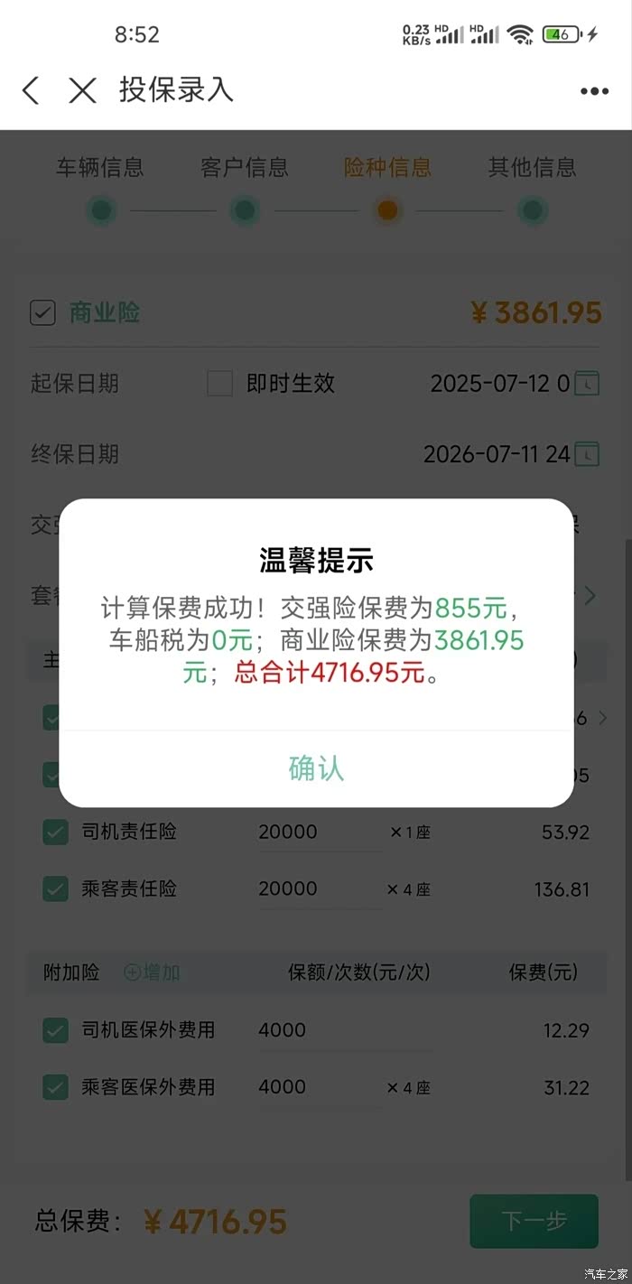 各路报价报出来,加一些附加险近5000。如果是三者200万减到附加险大概4200左右。