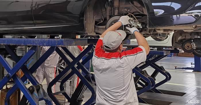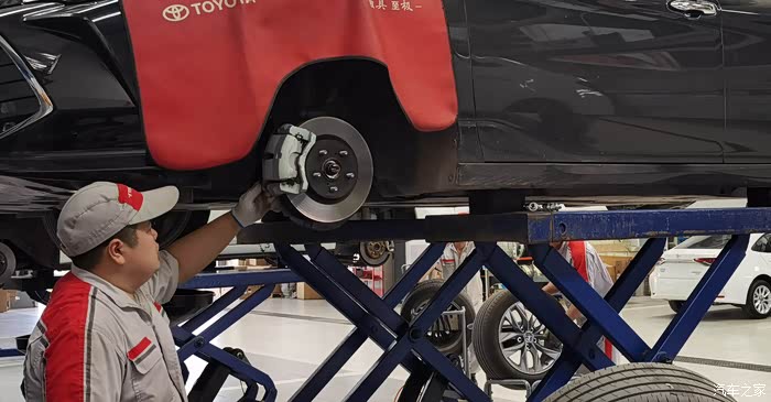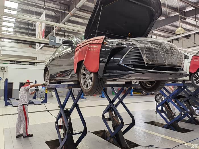 把车开到固定的车位以后,得调整好,因为后面保养需要把车支撑升起来,所以不能马虎。