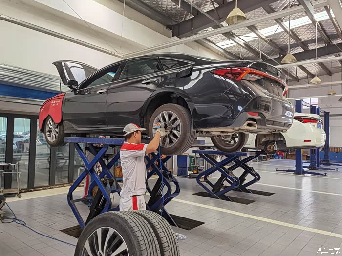 一路上车开的很顺畅,没有任何顿挫的感觉。但是如果说还想继续保持的话,得把车送去保养。正好接到了4S点的工作人员的联系电话,说到了首保时间。这不刚刚到家,就准备去4s店去保养了。到4s店的话不需要太久,然后这边的话就能够进入工位。这边工作人员都非常的热情,我刚到4s店的门口就已经迎接上来了,不需要我下车直接引导我进入工位。到这边的话,只需要把钥匙交给他们就好了,可以选择在旁观看,或者是去他们的大厅休息休息坐坐。他们把我带到客人休息的地方,然后在这边也是准备了挺多的东西,像是茶水,饮料和按摩椅。保养需要注意哪些要点呢?听师傅讲了也很多。