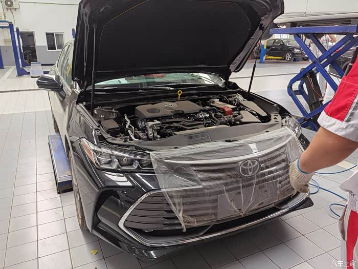 服务都是非常到位的。在这边坐了一会,另一个人要去车间看看,我就顺带着跟他过去一起看看,涨涨见识。这边的话已经发现车子前盖已经打开,而且是套上保护套,这个看着还是比较合适的,能够很好的避免去刮伤车子。也能防止油污粘到车上。车间里面都是在维修保养,很有可能会把油污溅的四处都是。