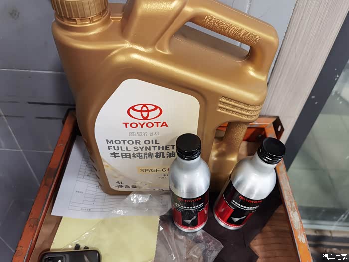 照着单子,准备需要用的东西,机油也是丰田纯牌机油。