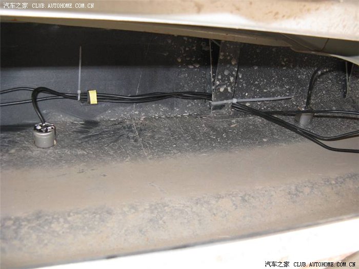 4.捆绑好四个探头的线,我是捆绑好后用3M胶粘在后杠里面的,同时也绑在了后杠上。
