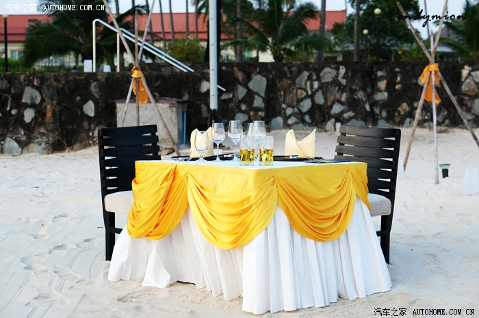 貌似晚上还有个沙滩烛光晚餐,估计不是新婚就是结婚纪念。