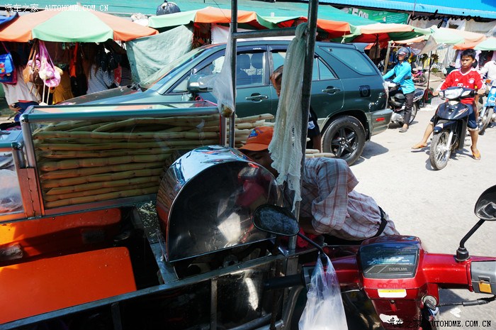 12月底天气依然那么热,看见一个甘蔗大叔过来,立刻截住。1000瑞尔一杯甘蔗汁,不过冰块多。