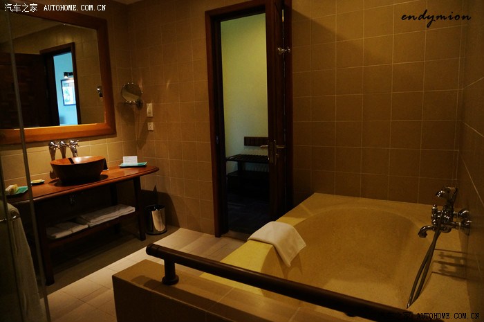 洗漱池都是木头做的。霸气。