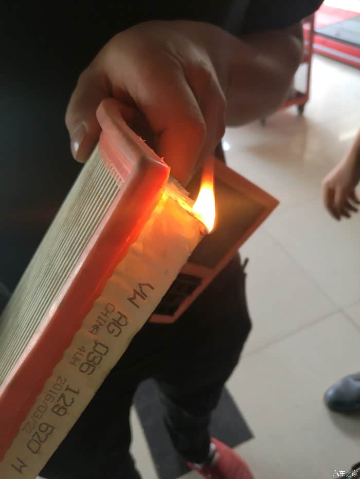 好的根本不会燃烧,伪劣滤清器就烧起来了