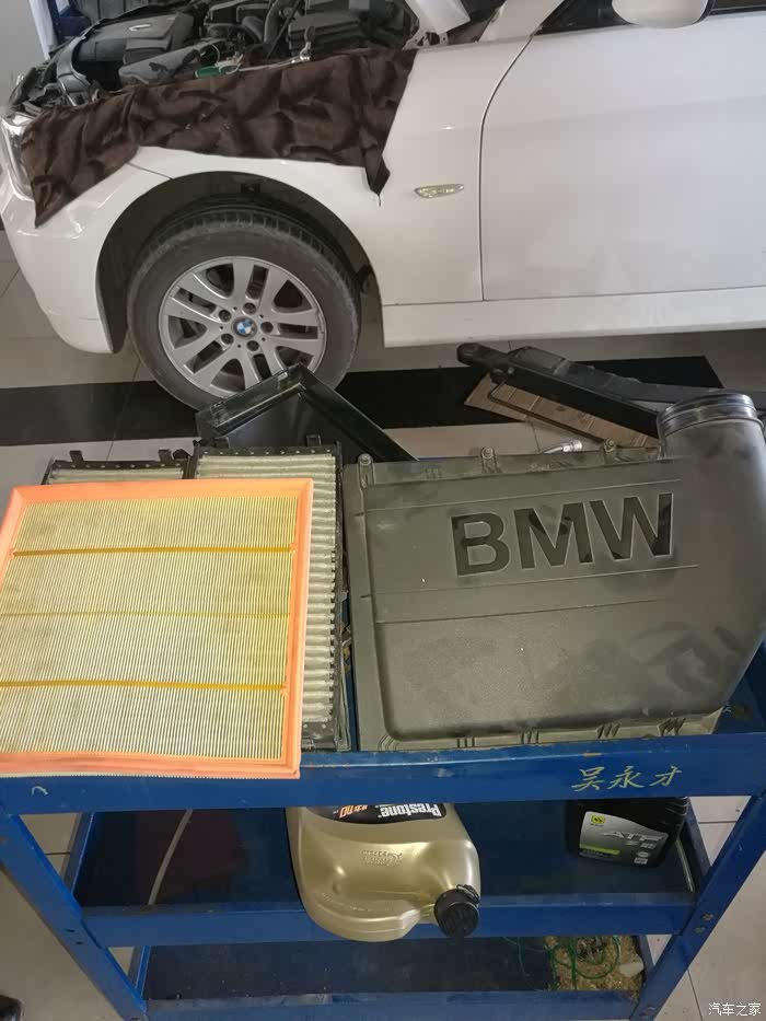 这是宝马车使用原厂滤清器二万公里了,拆开