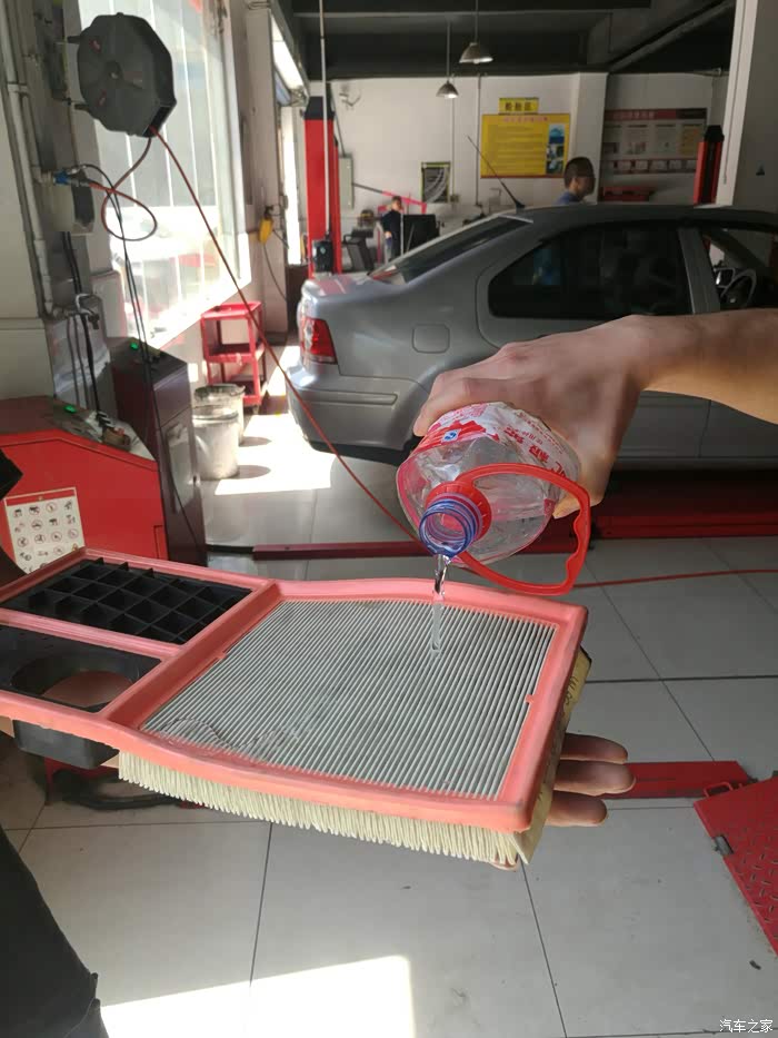 今天保养一台高尔夫GTI,发现空气滤清器上盖有大量灰尘,不敢想象涡轮进入多少灰尘,发动机内部增加多少积碳