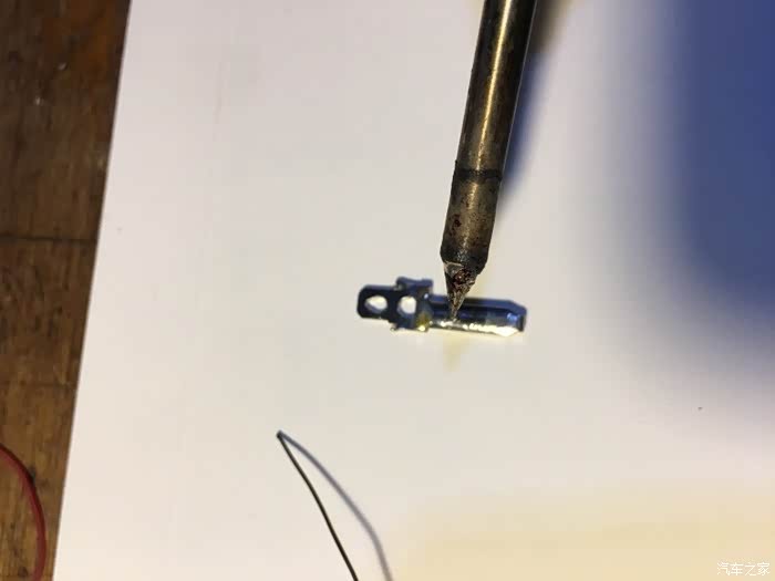 因为新游丝带的插头都是母头(被插的),车上原来带的插头也都是母头,所以需要其中一根线改成公头(插母头的),这时候白光烙铁就用上了,