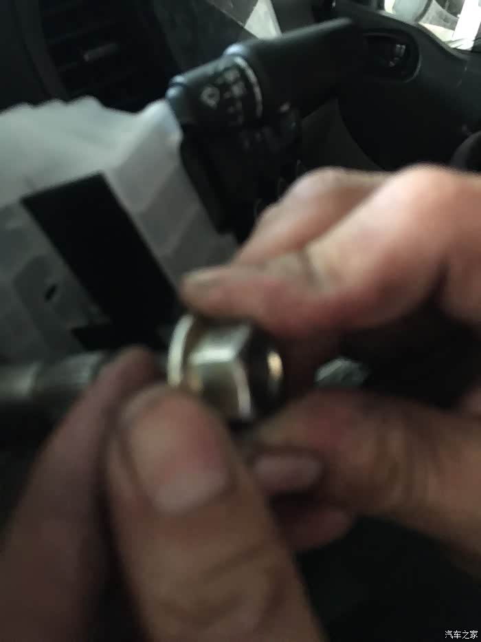 反向盘护罩有三个螺丝,螺丝去掉之后保护罩使劲一拉就开了,上下需要全部拿下来
