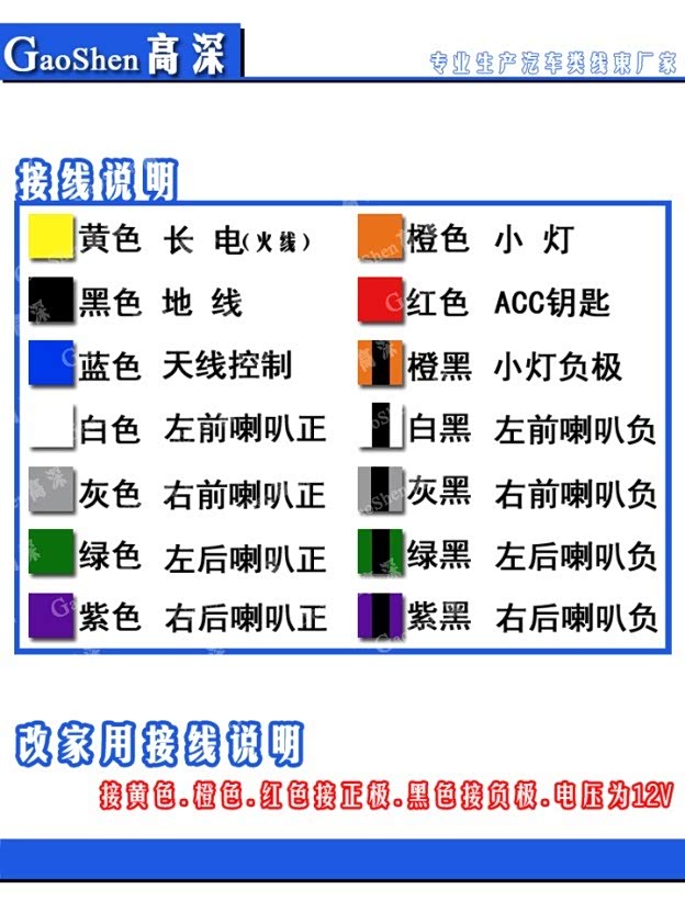5-小灯线(+12V)--我接是功放控制线,一开机就亮