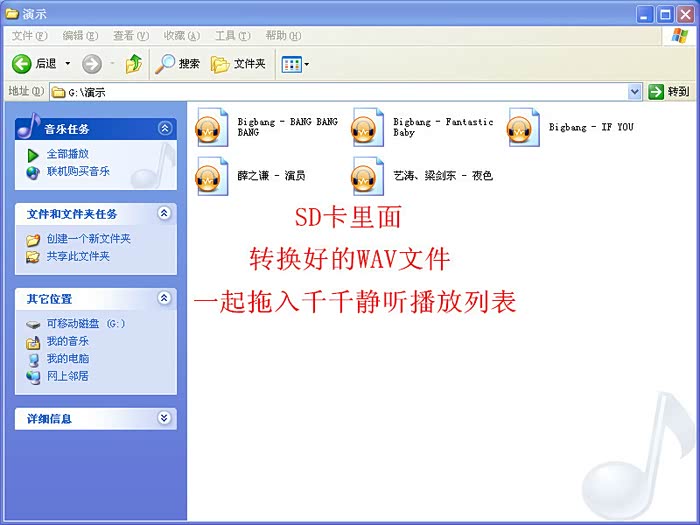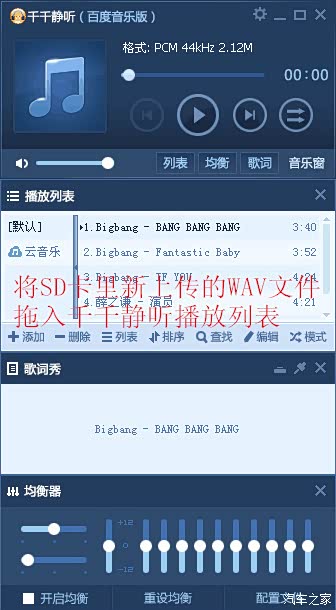 六,打开千千静听,将SD卡里面的WAV文件拖入千千静听播放列表。