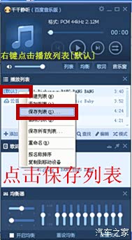 七,关键位置,右键--点击千千静听列表里的[默认],再点击--保存列表