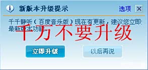 千千静听装完后会提示升级,千万不要升级!!!切记,不然要重新装