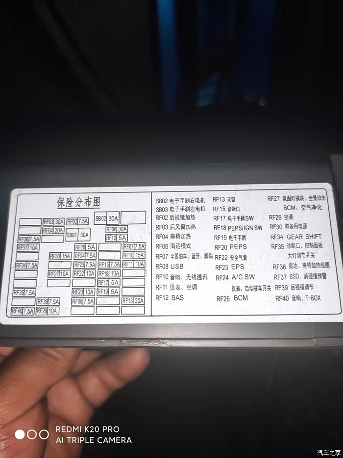 这捷x70的保险盒,自己装个行车记录仪,哪个是vcc和acc和点烟器保险?居然没标注出来。
