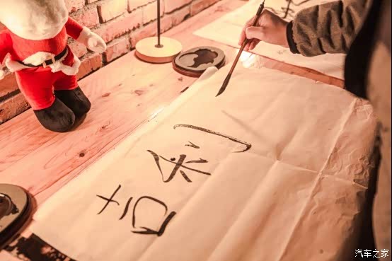 这位小朋友在这个环节表现的很出色,写书法的时候一气呵成,得到了老板额外赠送的一个小礼物。