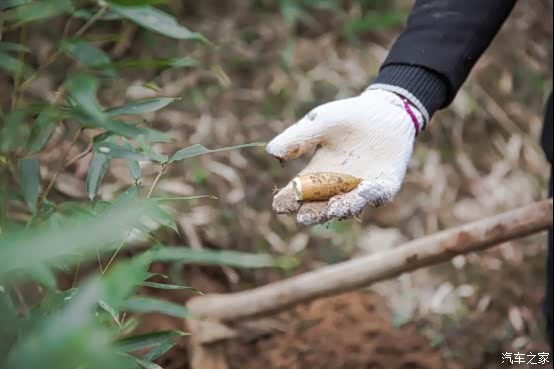 民宿的老板给我演示如何挖冬笋。小科普:竹笋是沿着竹子的根系生长的,全部掩埋在土里面,不像春笋一样会冒尖儿,所以挖冬笋是一门技术活。首先要找到竹子的根系,再沿着根系慢慢地挖。用民宿老板的话来讲,只能“尽人事,听天命”,有的时候可能挖了好几棵竹子的根系都挖不到,但也有可能在一个根系上面就能挖到一窝笋。这次就有好运的车友挖到了一窝冬笋,足足有四枚。