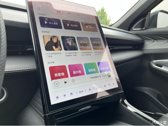 车内中控屏幕是一块13.2英寸的纵向屏幕,分辨率2K看得清晰。而且车机操作界面挺好看,各种APP在线,如高德导航、听音乐、听新闻等等。银河OS车机流畅易用,而且还有语音识别系统,可以语音操作车内氛围灯、天窗、空调等多个功能,开车的时候不用分散注意力。