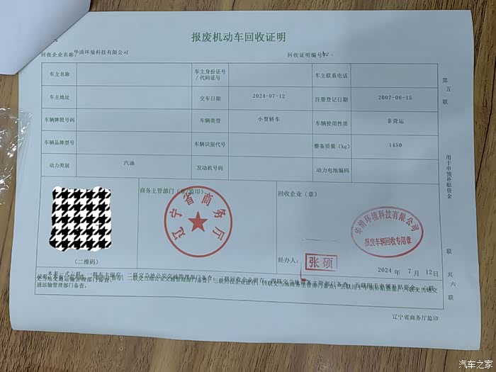 得到消息第一时间我就联系了中介帮我处理名下的国三车,7月18日拿到了报废机动车回收证明。也是在那个时候,国家将标准提高了,此前的补贴标准是购买新能源乘用车补贴1万元、购买燃油乘用车补贴7000元,最新的政策将补贴标准提高至2万元和1.5万元。涨到20000以后就更香了,相当于是17.78w买的车。