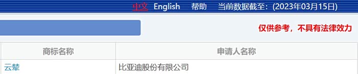 比亚迪又有新动作了!近期在中国商标网上,比亚迪注册了“云辇”(yún niǎn)商标。我百度了一下,云辇的意思是“有云状文饰的车子”“神仙以云为车”,听起来就非常具有神话感,这就是属于中国人的浪漫吧。