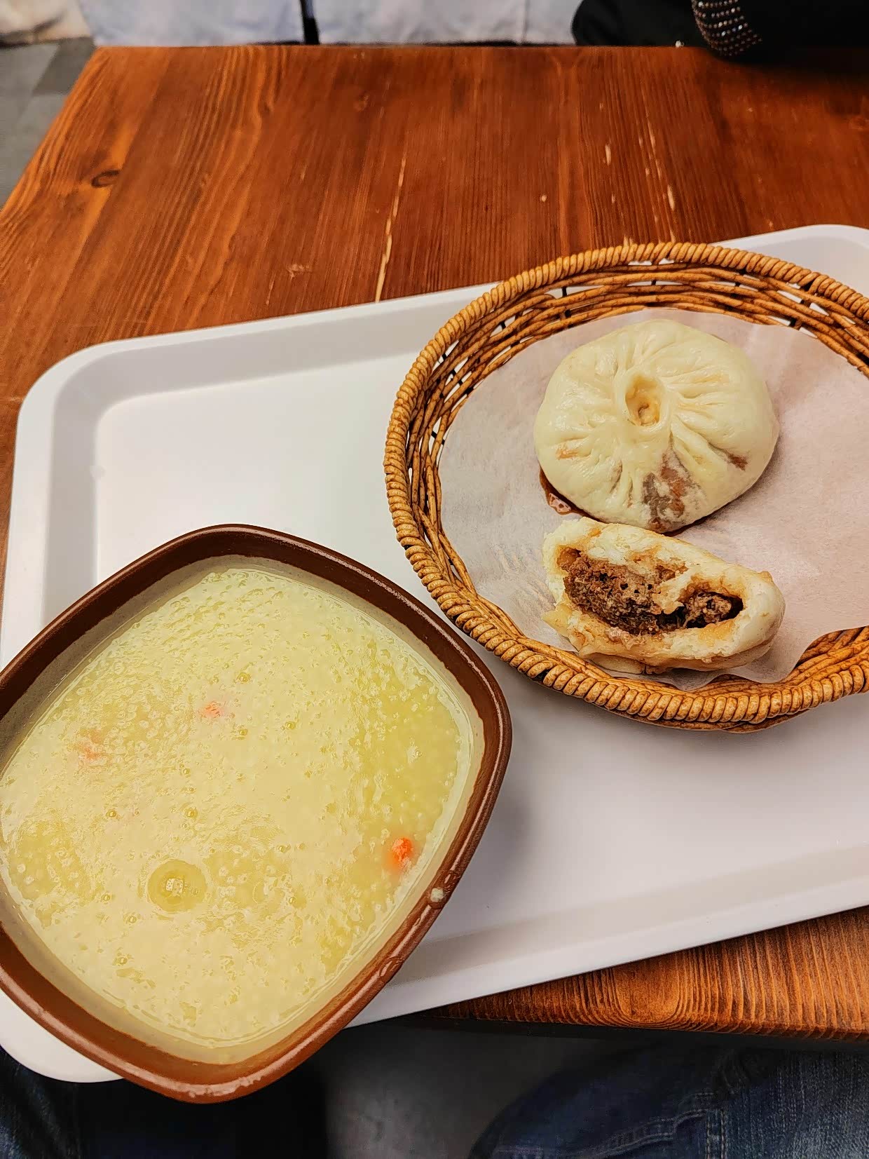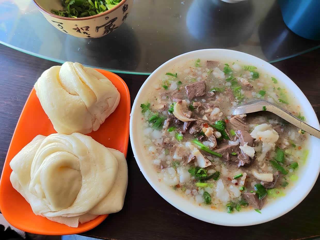 中午羊杂汤+花卷,花卷一共吃了3个,汤稍微油腻了一点