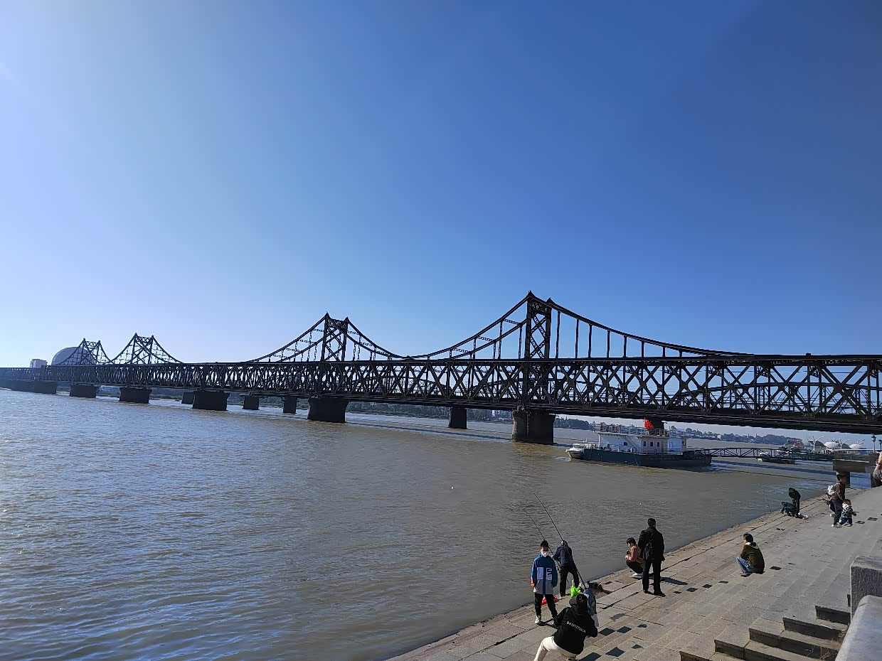 心心念念的鸭绿江断桥,江边不少钓鱼的大爷