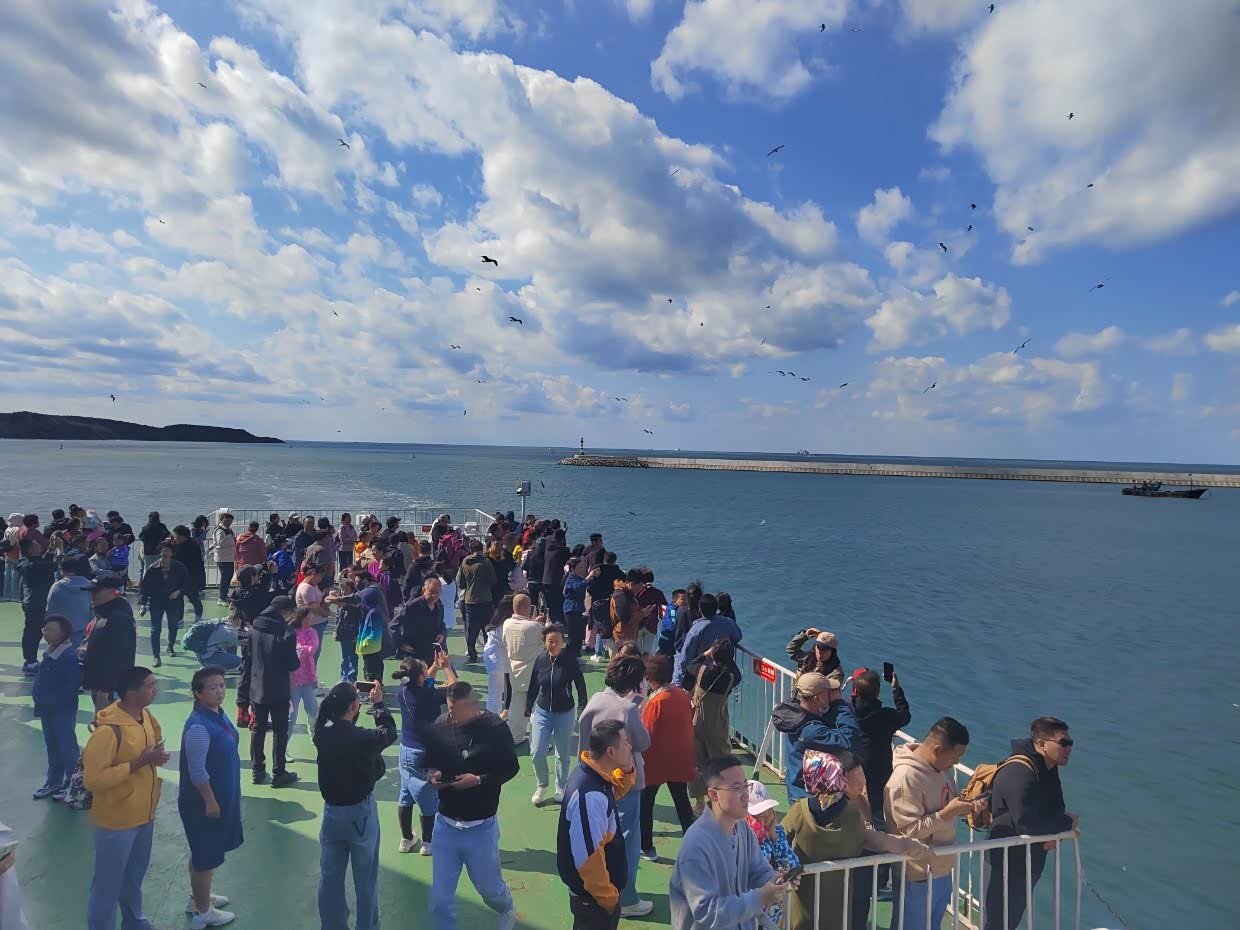 再一次回到房间,继续眯着,这一宿,基本上没怎么睡沉,脑袋嗡嗡的,昏昏沉沉,胃口倒是舒服一点点了。等到早上9点左右,再一次来到甲板上,人多了许多,海鸥-蓝天-大海,美不胜收。