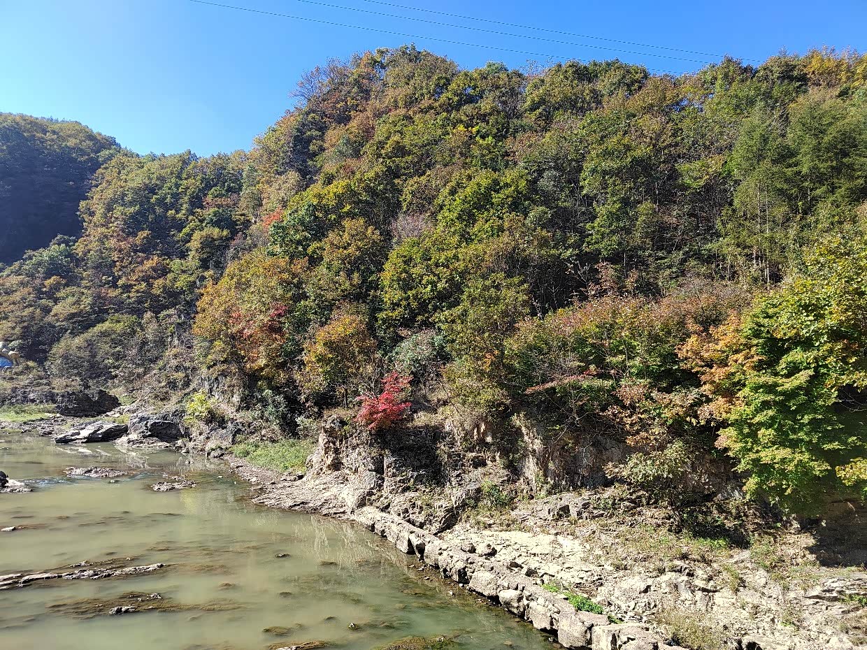 ,匆匆吃点面包+卤蛋充饥,等到8点左右到了鸭绿江断桥,已经游人如织了。之后一路向西北方向,路上路况很好,盘山路十八弯、蓝天+白云、小溪潺潺,心情逐渐回暖。下午5点左右到达乡村爱情拍摄基地,50元门票,好多车排队进去,我就不去了,不爱凑热闹,从门口打卡后,直奔铁岭市区。之后路况很差,大车很多,6点多到达酒店。
