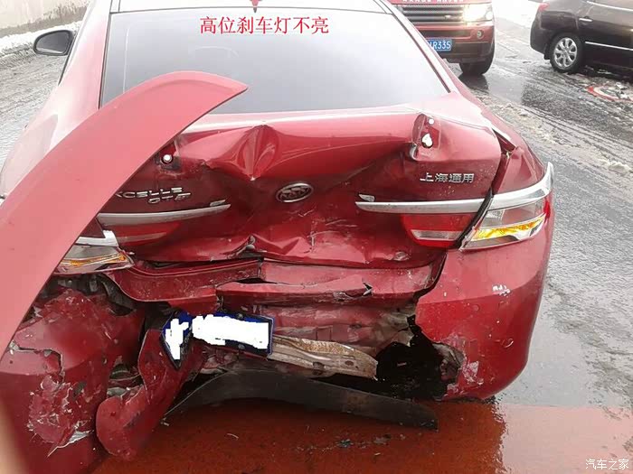 别克英朗GT新锐运动版惨烈车祸,修4万大洋,附图片,高位刹车灯坏了不亮,后面皮卡车跟太近亲上了。