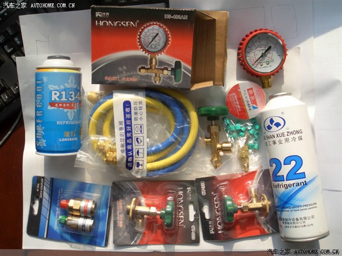 从2011年开始就觉得使用5年的汽车空调制冷效果不太理想。2012年9月在去4S店保养时也告诉说空调内有些缺氟,当时马上快进入冬季也就不考虑添加。今年春季保养时没有主动提起这事,有计划要真是缺氟就自己动手DIY添加。眼看北京的盛夏马上到来,先从网上搜集相关资料然后在淘宝下单买来DIY加氟全套工具。连带着把家用空调加氟的器件也一并备齐。因为自从有一年冬天使用家里空调制热时突然感觉跑过一次气后,这台空调夏天的制冷效果也就不咋的了。在去年干脆就没有加电开机过,一方面住的一楼感觉没有那么热,另一方面也难的去搞启用清理。今年要用的话就自己搞搞一并解决。