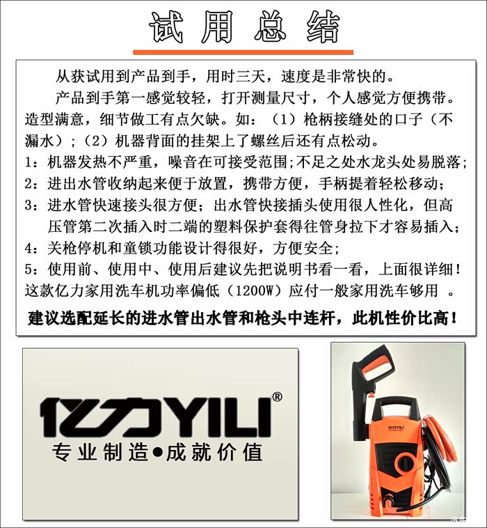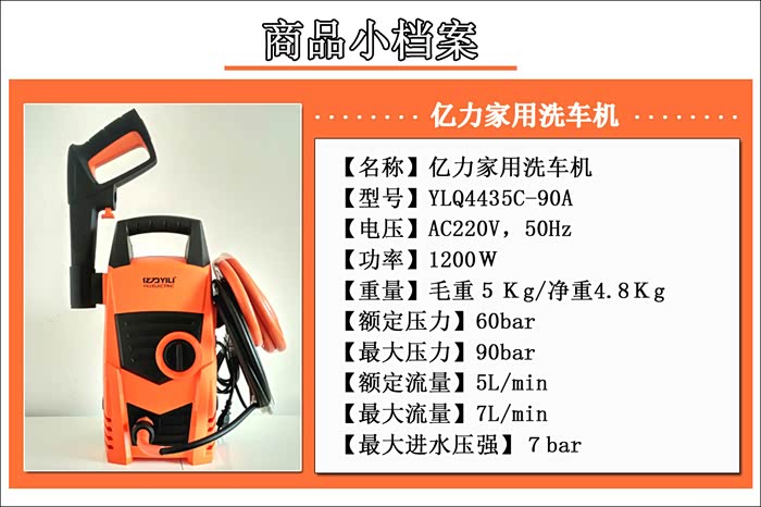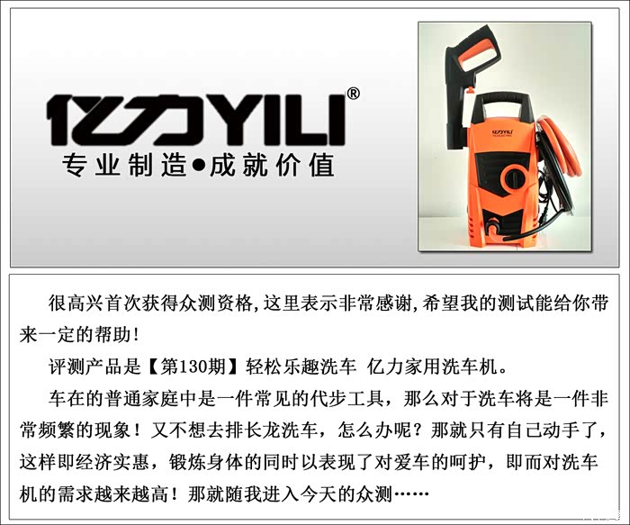 亿力家用洗车机,寻找洗车乐趣;重量轻、便于携带,二种进水模式,安全、经济实惠型洗车机,值得入手!