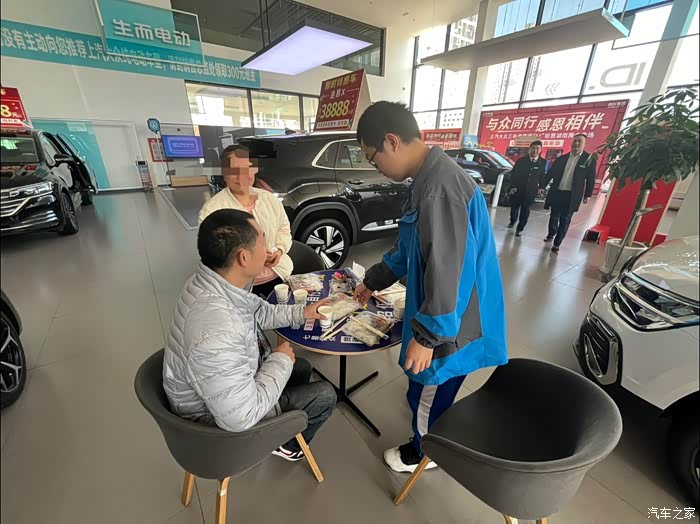 因为家里孩子读的寄宿,所以中午接完他才到的店里,店里还贴心的准备了午饭,要提出表扬,麓谷这家腾飞4S店能干到全国第二也不是没有原因的,其实有时候打动你的就是这些细节,销售小哥服务也很热情,所以也没有跟他拉锯战,就说了下自己心里想的优惠然后算了下补贴还有旧车的估值,也还算满意。最后因为贷款还能少一万五,而且了解可以提前还款,所以最后还是走的贷款,想着还个一年就提前还掉。七七八八最后加上店里的一个套餐外加以旧换新补贴还有卖掉旧车保险购置税那些差不多十七万五。