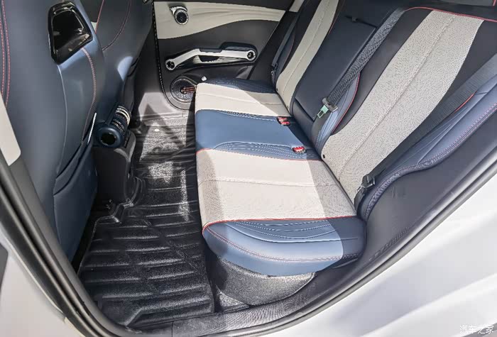 第二排空间还是很富裕,即使坐三个人也不会感到局促!坐垫的宽度和长度都是恰到好处!