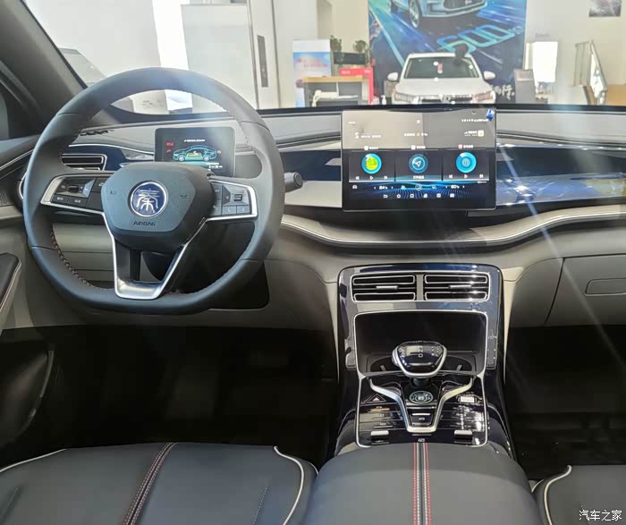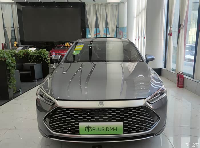 上午跟媳妇去看了一下秦PLUS DM-i,展车是灰色的,车漆看起来十分有质感,很显高级。车身造型也比较帅气,有点跑车的感觉,我们还挺喜欢的。