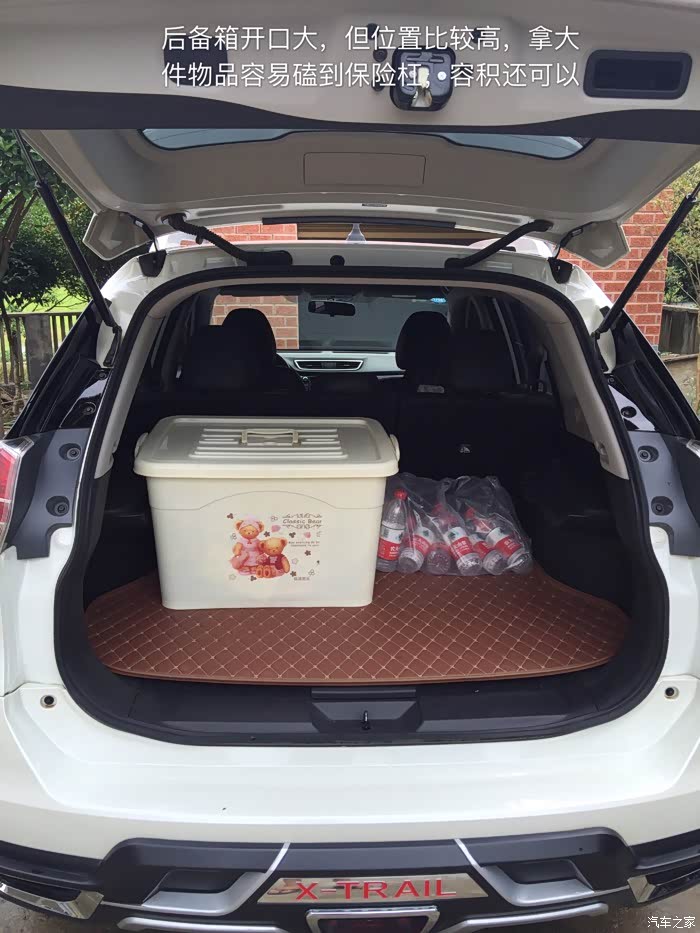 空间:这是我买奇骏的重要原因之一,前后排空间都非常大,同级别尺寸最大,轴距最长,离地间隙高,通过性也好。要空间选奇骏是没错的!