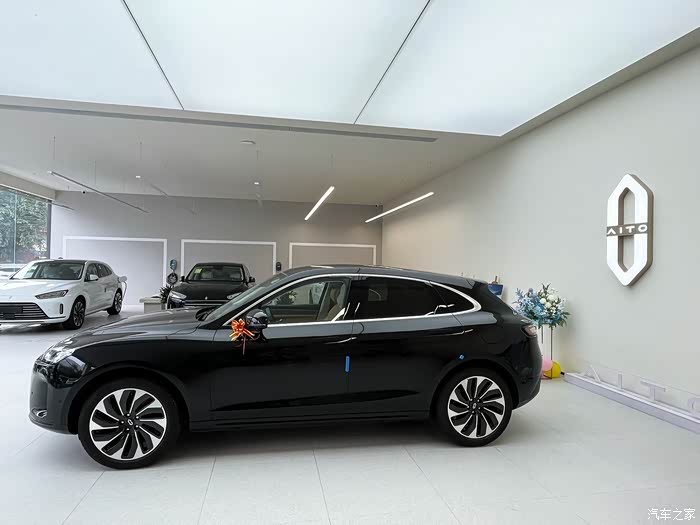 下面这张图片是我在网上看到的黑色问界M5,有被深深吸引到,所以即使官方主打的是绿色(松霜绿)和白色(陶瓷白),我依旧毅然决然选择了黑色。