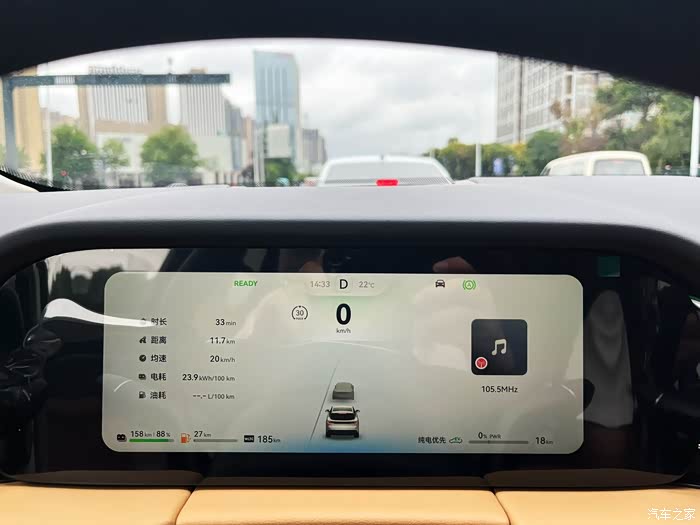 纯电表显充满可续航180km,日常使用充电限值一般设置在90%-91%,充满可续航160多公里。当纯电续航低于25%(45km)的时候,增程器介入,但行驶速度低于40码时,系统依然是用纯电,堵车时适用。
