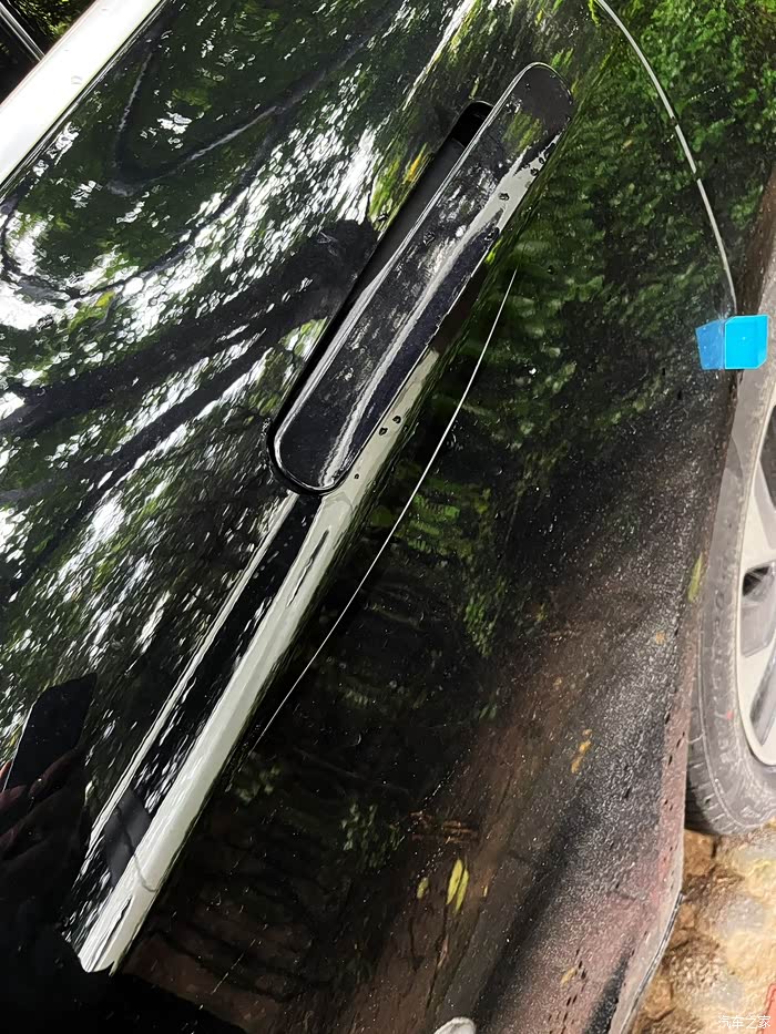 我原本有点纠结,犹豫要不要贴车衣。然而车在挂着新车拉花,车门防撞棉都没有撕掉的情况下就被手贱党故意划了,划得很深,抛光抛不掉,车衣都遮不住。无奈我只好联系了一家做局部喷漆比较专业的修理厂,准备做漆面修复。后来先用粗砂纸湿打磨,抛光后划痕看着很浅了,贴了车衣就完全遮住了。愿天下车友都不会遇到手贱党。