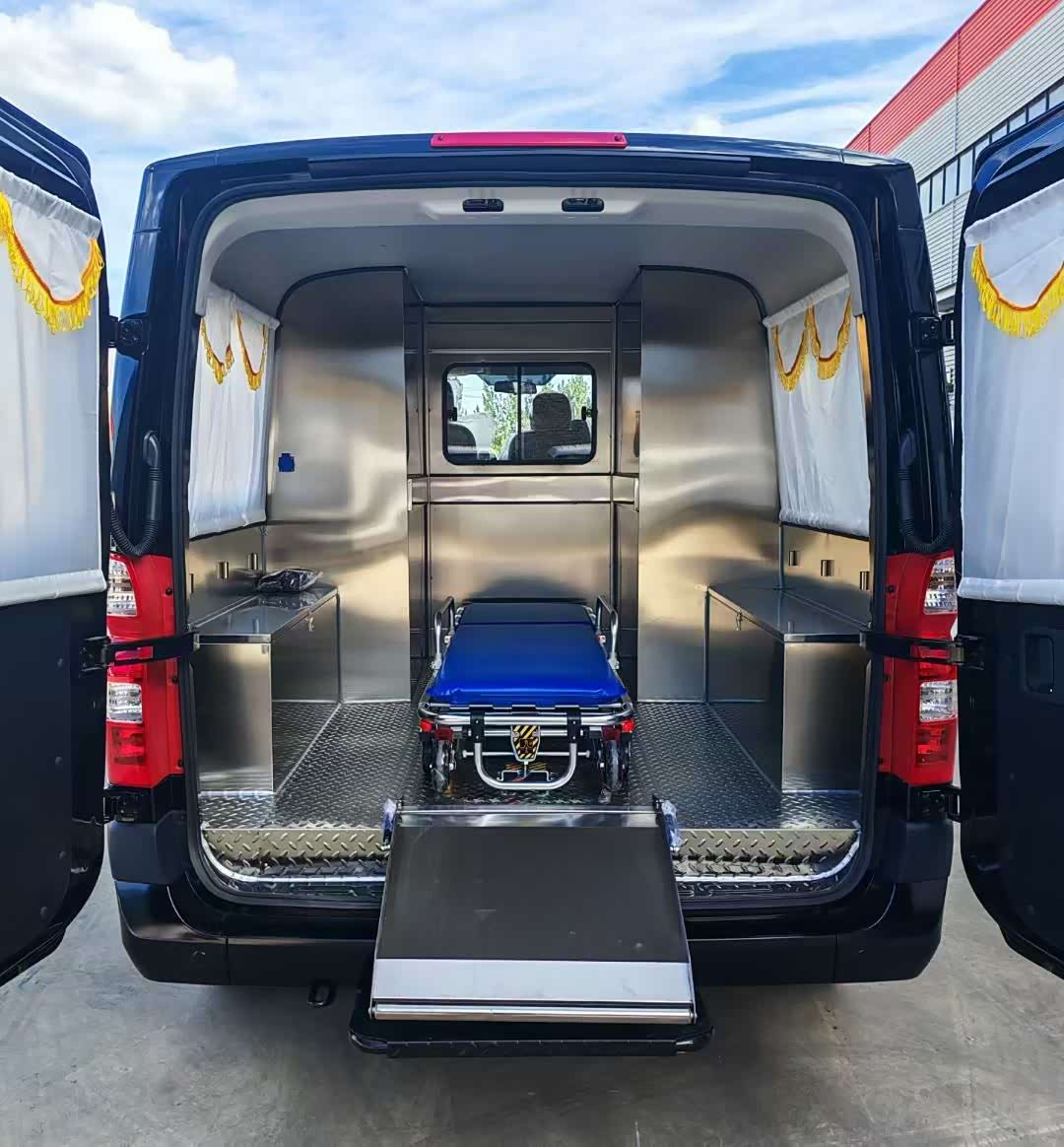 配备福田4F20TC3型柴油发动机,2.0T排量/150马力。液压助力转向、遥控门锁、电动玻璃、电动后视镜、ABS制动系统,可选装倒车影像及导航。准乘2-6人座,殡葬专用车手续
